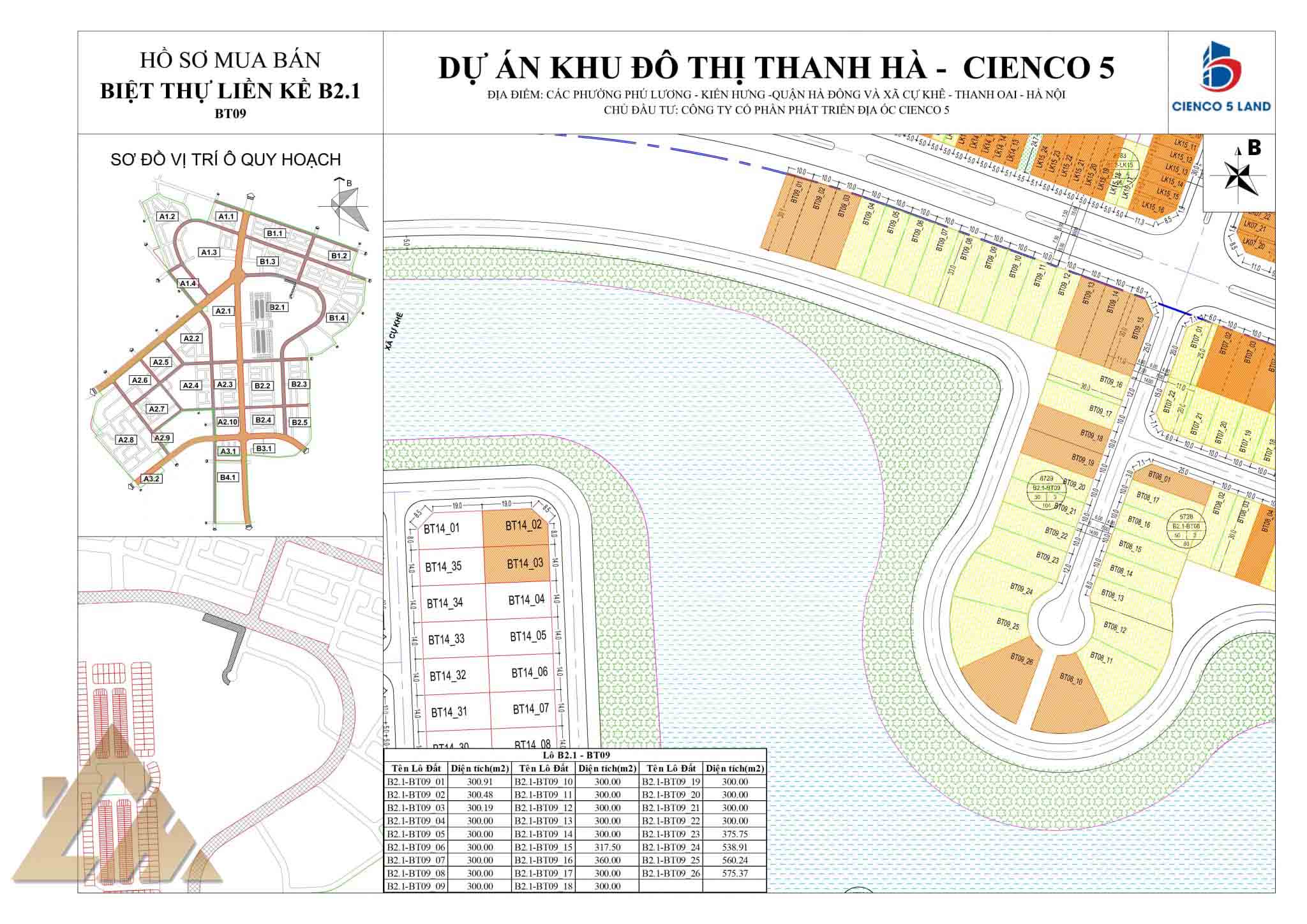 Biệt thự Thanh Hà b2.1 biệt thự 09 mặt hồ điều hoà : Quy mô 8.729m2 bao gồm 26 lô biệt thự song lập và đơn lập có diện tích từ 300m2 317.5 m2 375,5 m2 538,91 m2 560,24 m2 575,37 m2 mặt tiền từ 8m 10 m 50 m theo các mặt đường 14m 17m 30m. Kiến trúc đô thị xây dựng 3 tầng 1 tum có hầm mật độ xây dựng 50% diện tích đất.