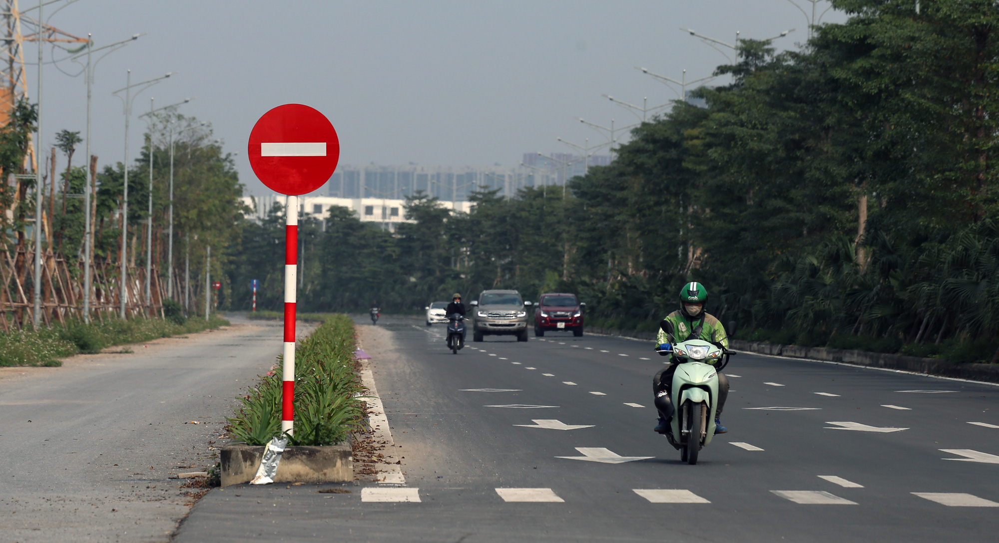 Nhiều người dân chạy vào làn ô tô dù có phân làn bằng dải phân cách cứng với biển báo đầy đủ.